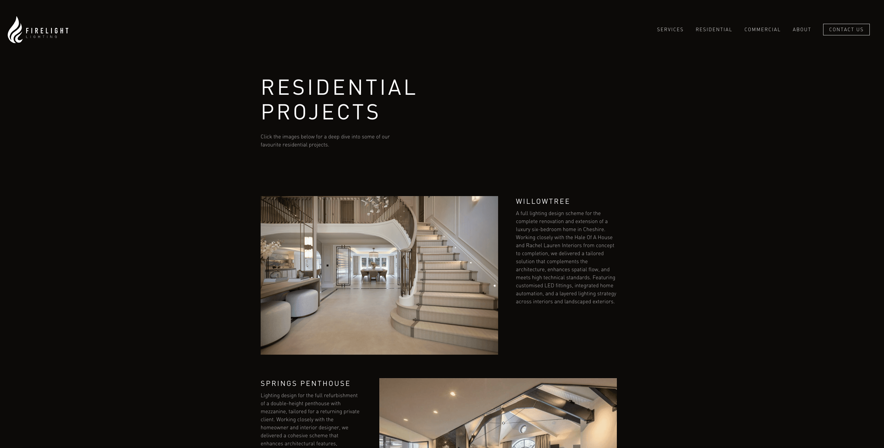 Competitor scan: what similar lighting design firms lead with (language, proof, imagery, UX patterns).